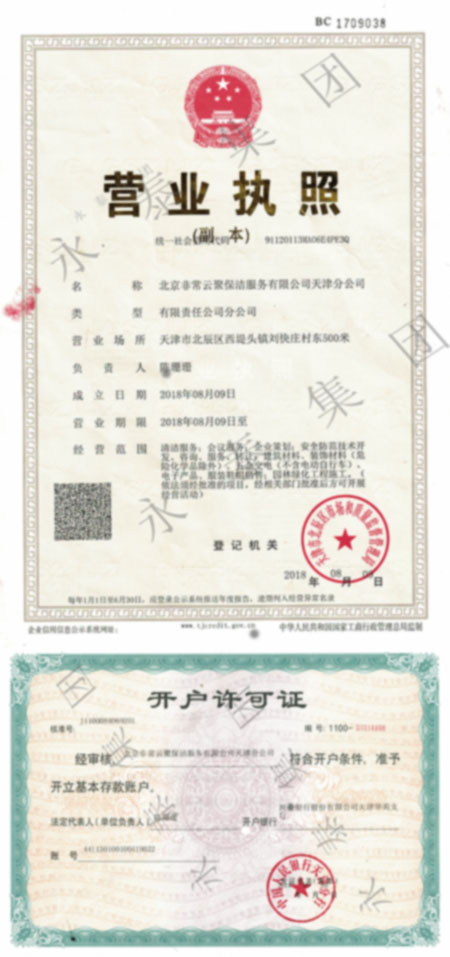 北京非常云聚保洁服务有限公司天津分公司资质