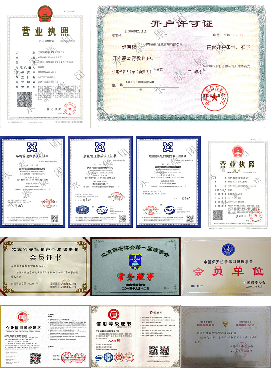 天津华盛园物业管理有限公司资质